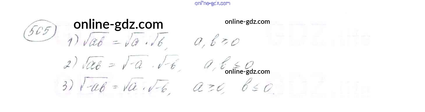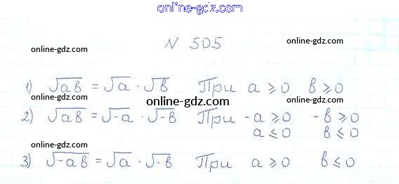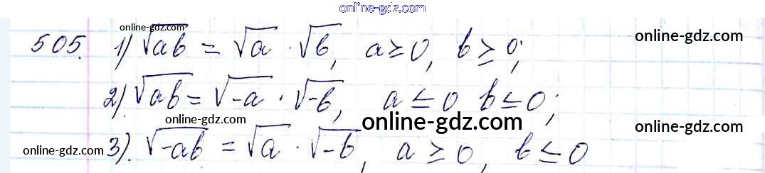 Готовые домашние задания по Алгебре за 8 класс Учебник Мерзляк, Полонский Алгоритм успеха 2016 - §16. Свойства арифметического квадратного корня Глава 2. Квадратные корни. Действительные числа 505
