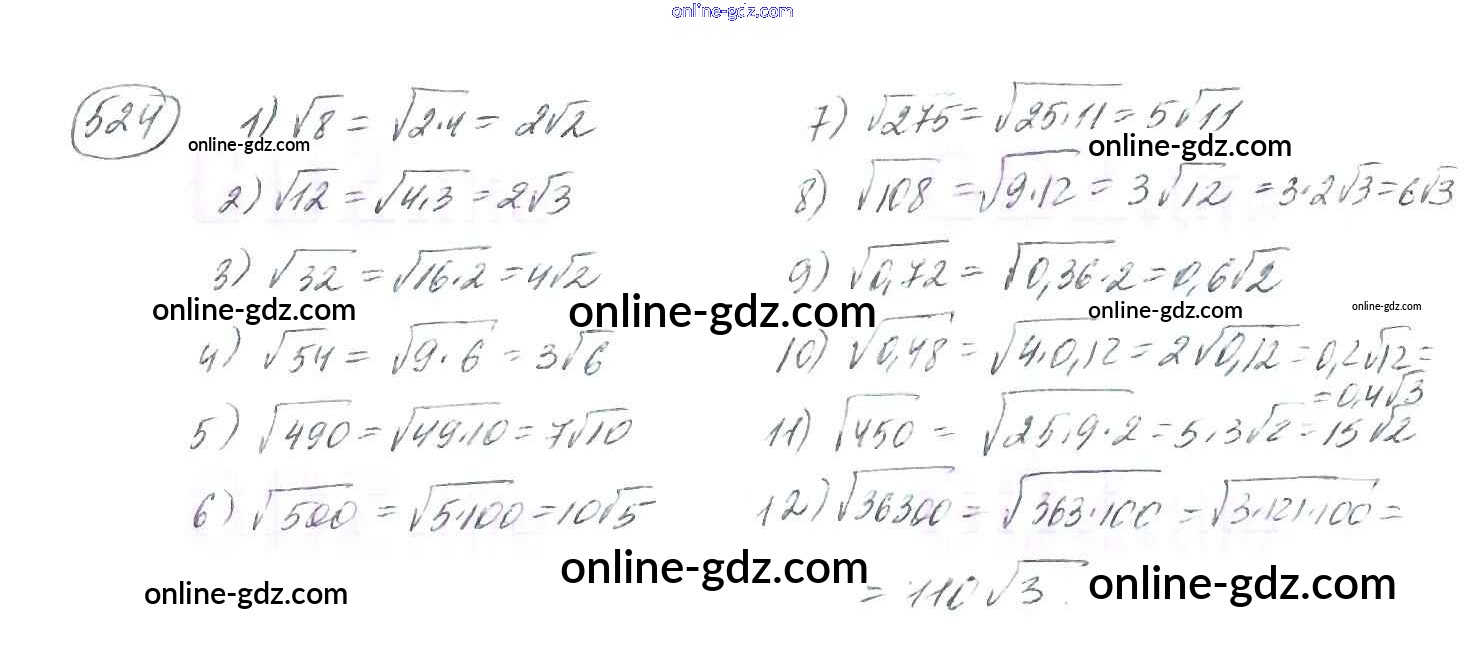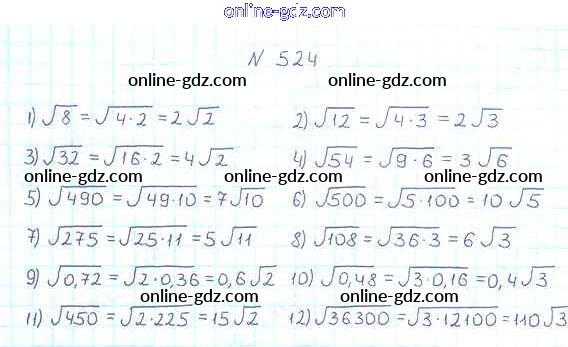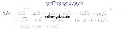 Готовые домашние задания по Алгебре за 8 класс Учебник Мерзляк, Полонский Алгоритм успеха 2016 - §17. Тождественные преобразования выражений, содержащих арифметические квадратные корни Глава 2. Квадратные корни. Действительные числа 524