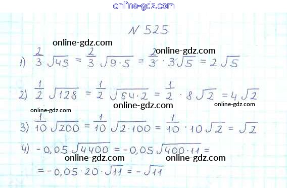 Готовые домашние задания по Алгебре за 8 класс Учебник Мерзляк, Полонский Алгоритм успеха 2016 - §17. Тождественные преобразования выражений, содержащих арифметические квадратные корни Глава 2. Квадратные корни. Действительные числа 525