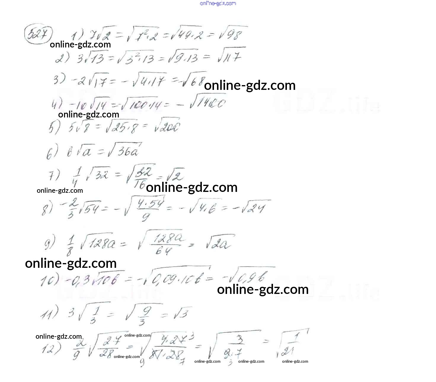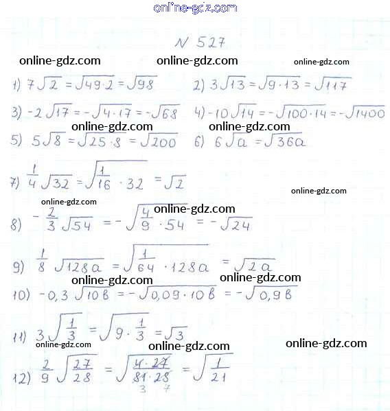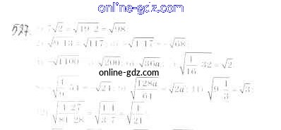 Готовые домашние задания по Алгебре за 8 класс Учебник Мерзляк, Полонский Алгоритм успеха 2016 - §17. Тождественные преобразования выражений, содержащих арифметические квадратные корни Глава 2. Квадратные корни. Действительные числа 527