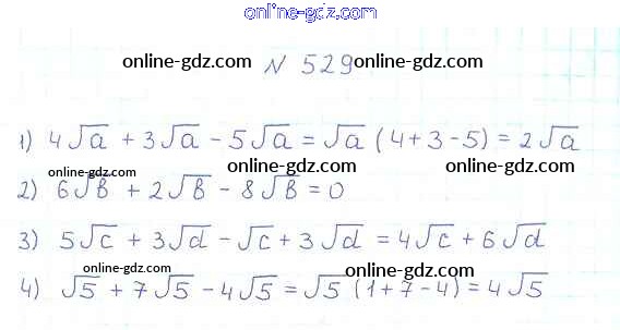 Готовые домашние задания по Алгебре за 8 класс Учебник Мерзляк, Полонский Алгоритм успеха 2016 - §17. Тождественные преобразования выражений, содержащих арифметические квадратные корни Глава 2. Квадратные корни. Действительные числа 529