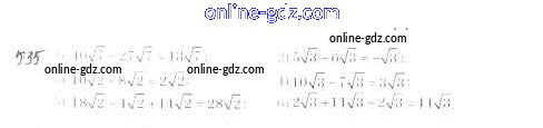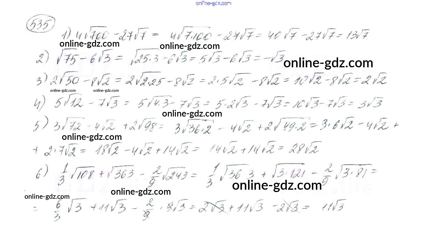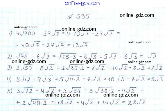 Готовые домашние задания по Алгебре за 8 класс Учебник Мерзляк, Полонский Алгоритм успеха 2016 - §17. Тождественные преобразования выражений, содержащих арифметические квадратные корни Глава 2. Квадратные корни. Действительные числа 535