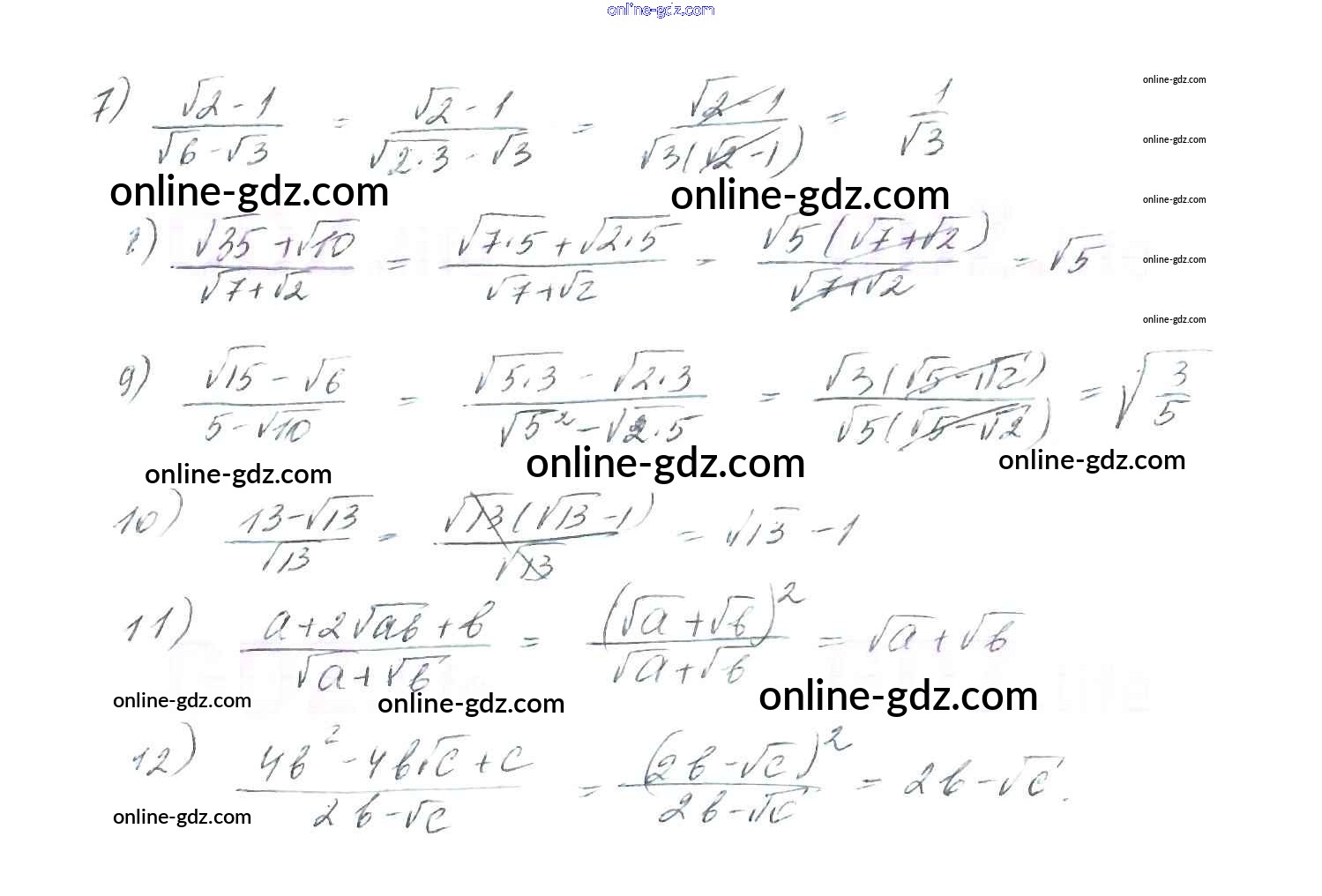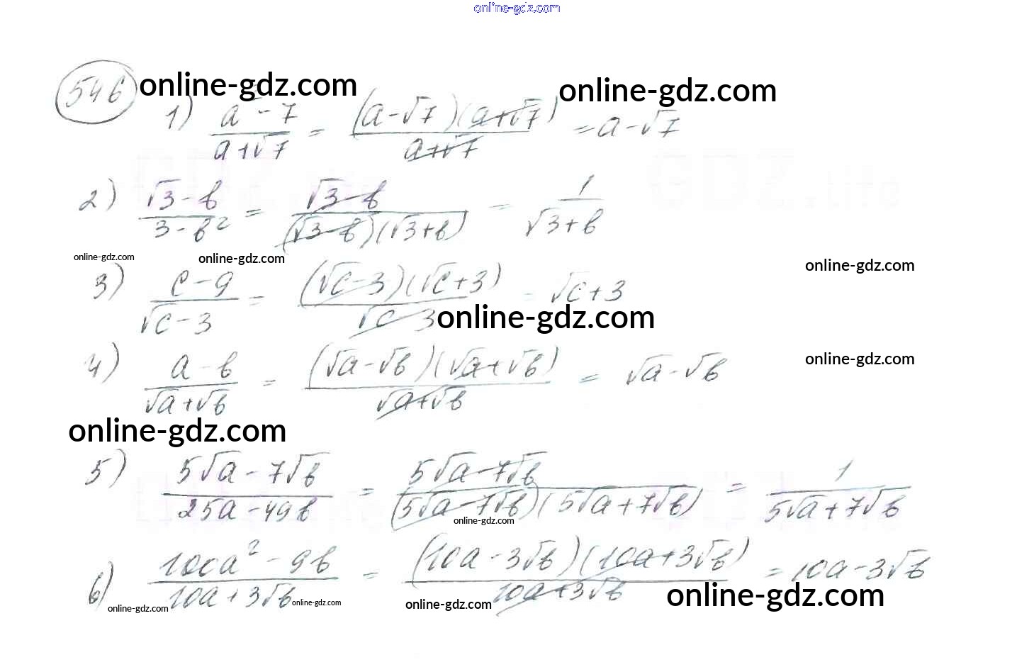 Готовые домашние задания по Алгебре за 8 класс Учебник Мерзляк, Полонский Алгоритм успеха 2016 - §17. Тождественные преобразования выражений, содержащих арифметические квадратные корни Глава 2. Квадратные корни. Действительные числа 546