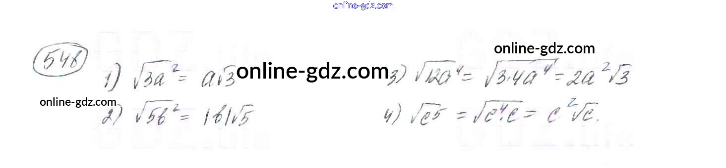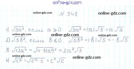 Готовые домашние задания по Алгебре за 8 класс Учебник Мерзляк, Полонский Алгоритм успеха 2016 - §17. Тождественные преобразования выражений, содержащих арифметические квадратные корни Глава 2. Квадратные корни. Действительные числа 548