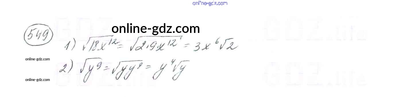 Готовые домашние задания по Алгебре за 8 класс Учебник Мерзляк, Полонский Алгоритм успеха 2016 - §17. Тождественные преобразования выражений, содержащих арифметические квадратные корни Глава 2. Квадратные корни. Действительные числа 549