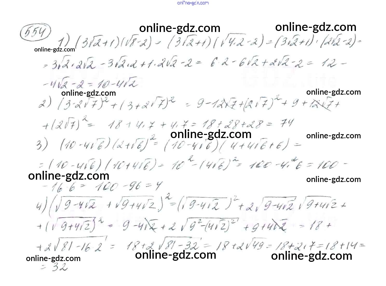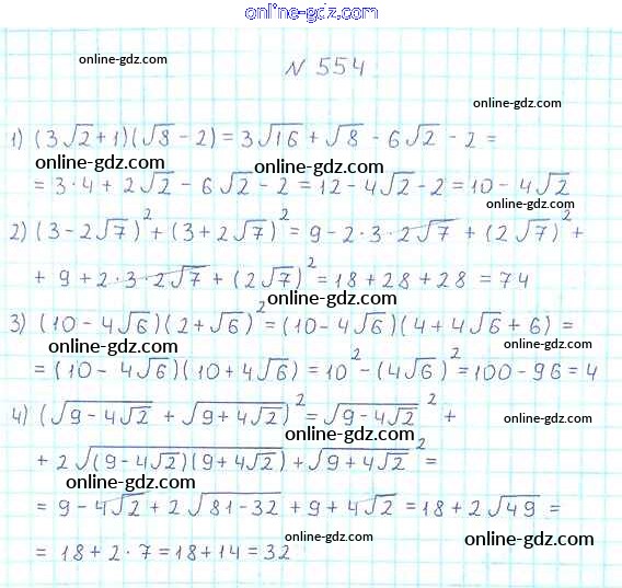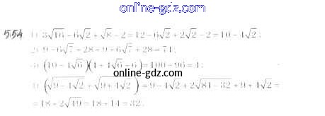Готовые домашние задания по Алгебре за 8 класс Учебник Мерзляк, Полонский Алгоритм успеха 2016 - §17. Тождественные преобразования выражений, содержащих арифметические квадратные корни Глава 2. Квадратные корни. Действительные числа 554