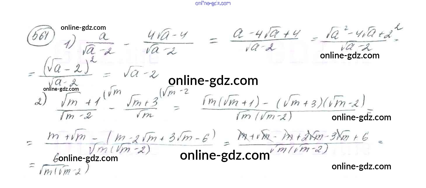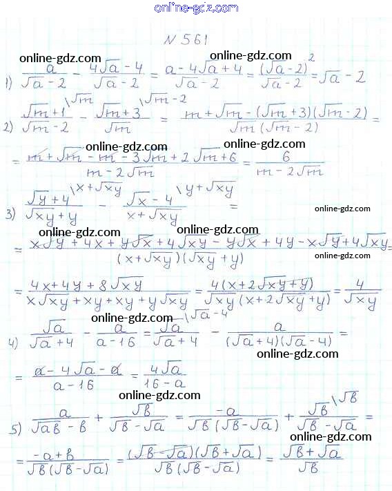 Готовые домашние задания по Алгебре за 8 класс Учебник Мерзляк, Полонский Алгоритм успеха 2016 - §17. Тождественные преобразования выражений, содержащих арифметические квадратные корни Глава 2. Квадратные корни. Действительные числа 561
