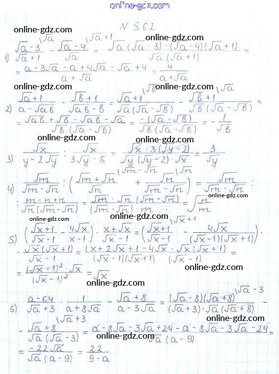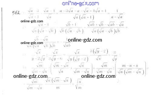 Готовые домашние задания по Алгебре за 8 класс Учебник Мерзляк, Полонский Алгоритм успеха 2016 - §17. Тождественные преобразования выражений, содержащих арифметические квадратные корни Глава 2. Квадратные корни. Действительные числа 562