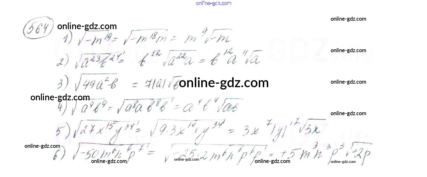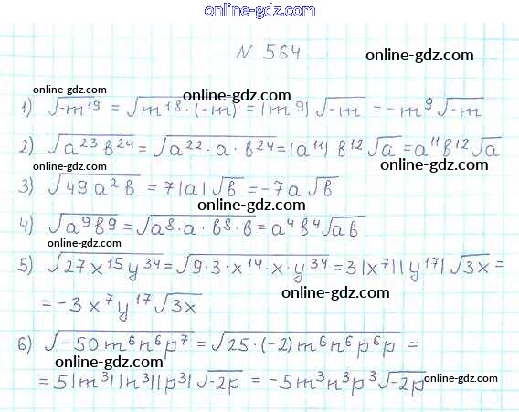 Готовые домашние задания по Алгебре за 8 класс Учебник Мерзляк, Полонский Алгоритм успеха 2016 - §17. Тождественные преобразования выражений, содержащих арифметические квадратные корни Глава 2. Квадратные корни. Действительные числа 564