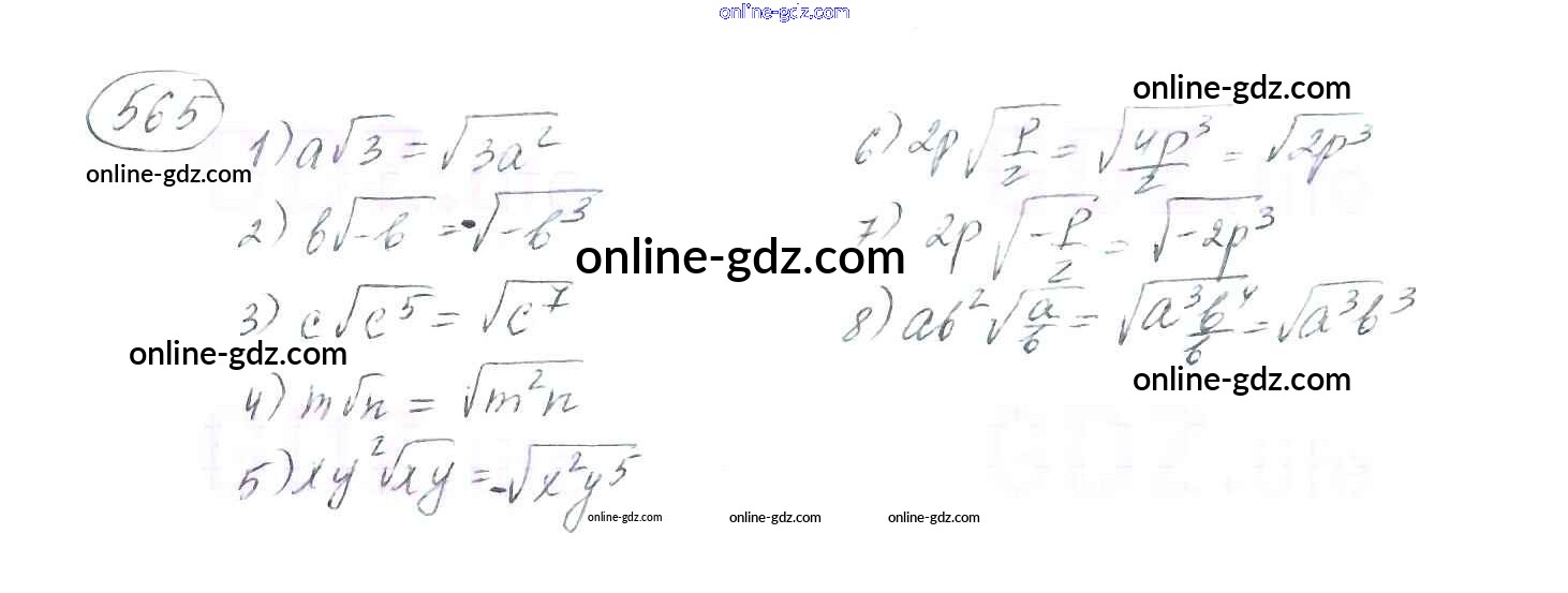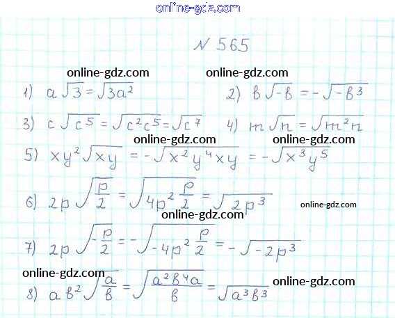 Готовые домашние задания по Алгебре за 8 класс Учебник Мерзляк, Полонский Алгоритм успеха 2016 - §17. Тождественные преобразования выражений, содержащих арифметические квадратные корни Глава 2. Квадратные корни. Действительные числа 565