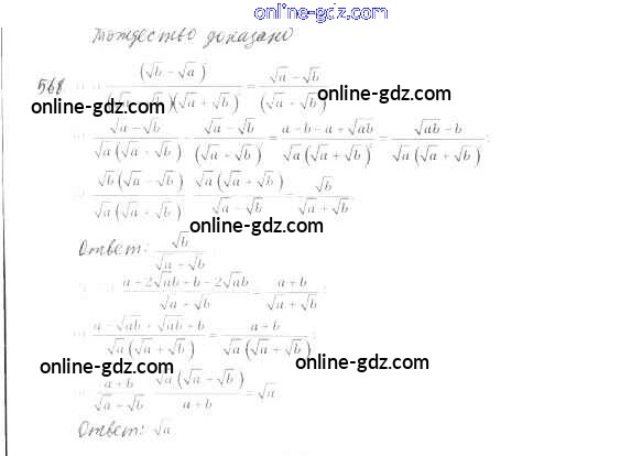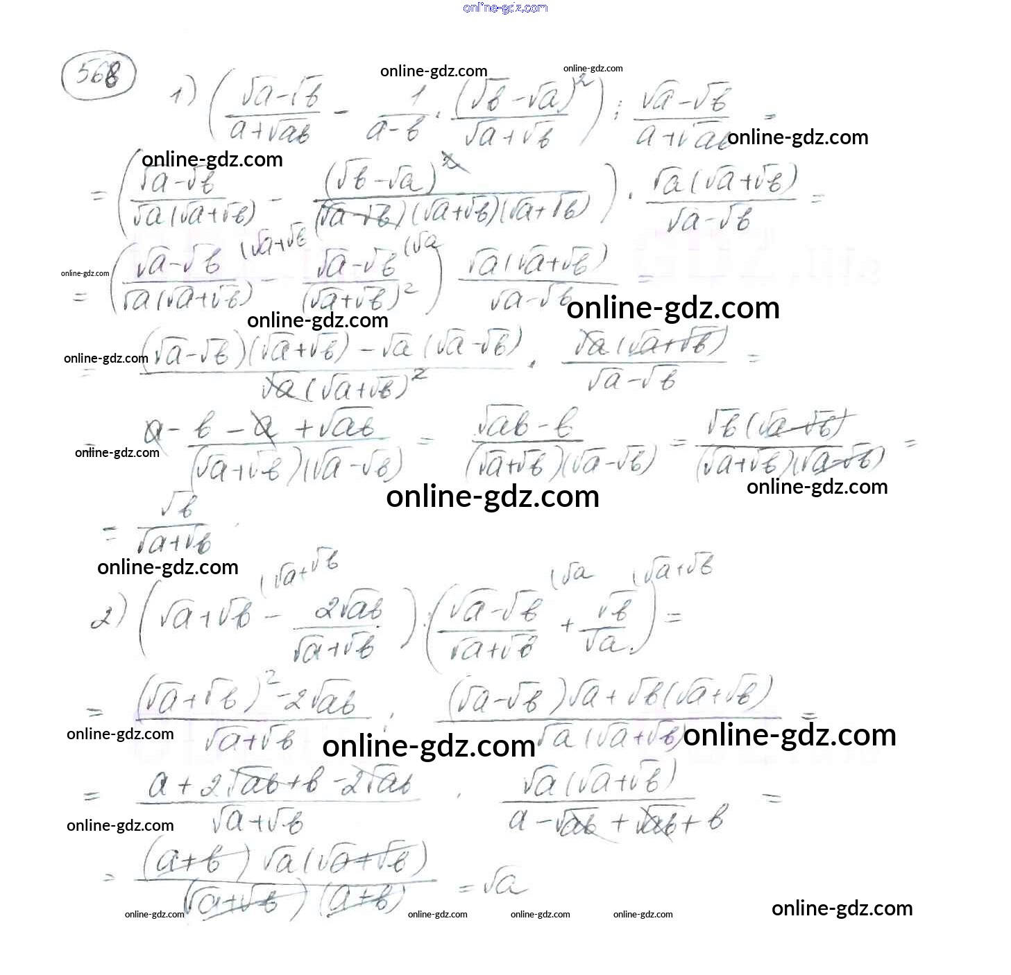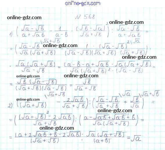 Готовые домашние задания по Алгебре за 8 класс Учебник Мерзляк, Полонский Алгоритм успеха 2016 - §17. Тождественные преобразования выражений, содержащих арифметические квадратные корни Глава 2. Квадратные корни. Действительные числа 568