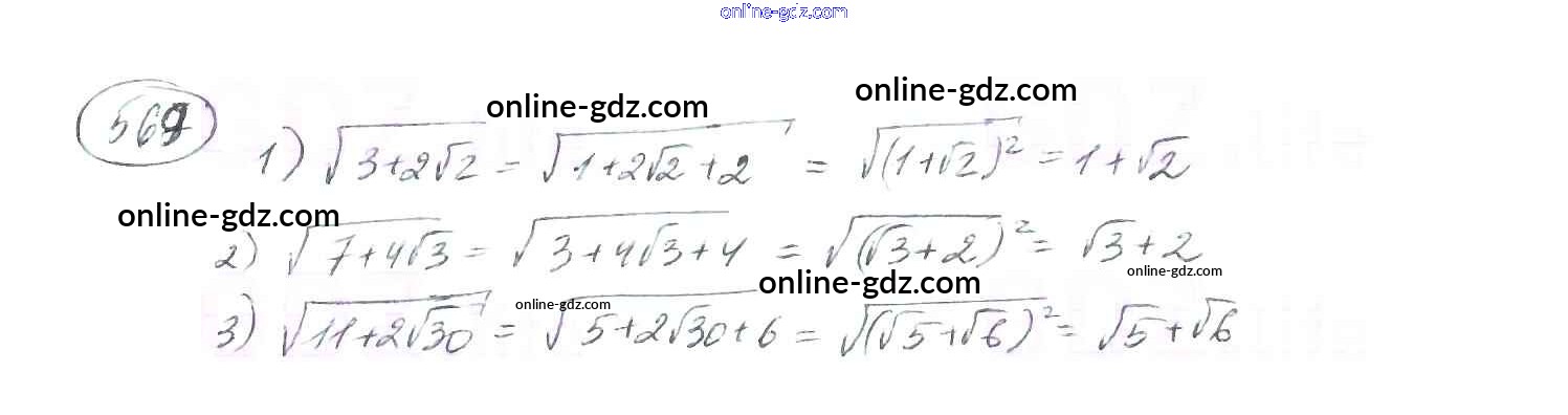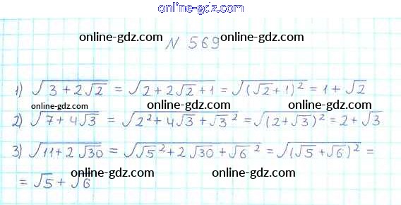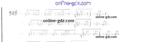 Готовые домашние задания по Алгебре за 8 класс Учебник Мерзляк, Полонский Алгоритм успеха 2016 - §17. Тождественные преобразования выражений, содержащих арифметические квадратные корни Глава 2. Квадратные корни. Действительные числа 569