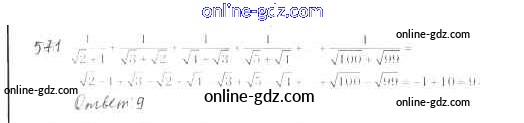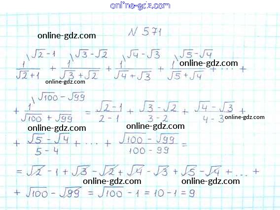 Готовые домашние задания по Алгебре за 8 класс Учебник Мерзляк, Полонский Алгоритм успеха 2016 - §17. Тождественные преобразования выражений, содержащих арифметические квадратные корни Глава 2. Квадратные корни. Действительные числа 571