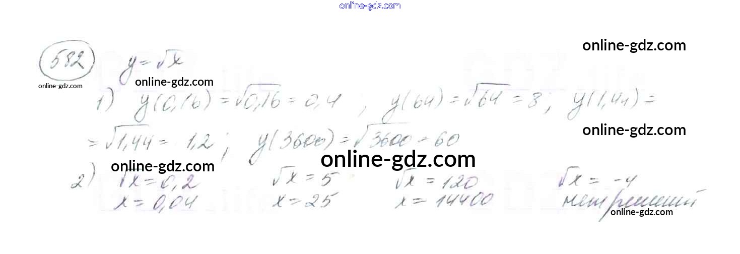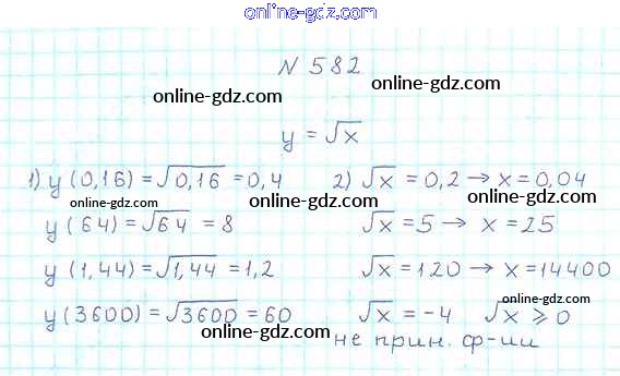 Готовые домашние задания по Алгебре за 8 класс Учебник Мерзляк, Полонский Алгоритм успеха 2016 - §18. Функция y=√x Глава 2. Квадратные корни. Действительные числа 582
