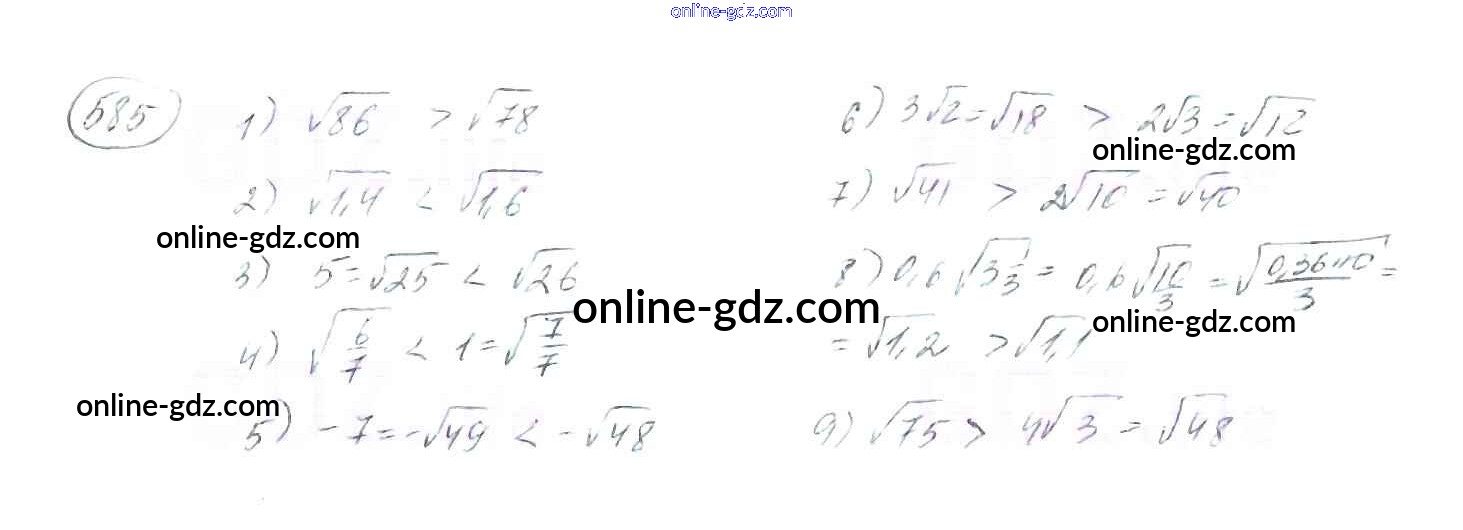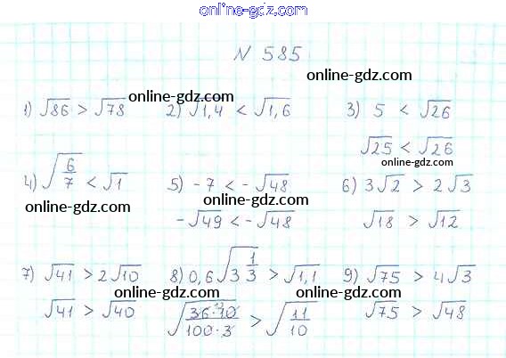 Готовые домашние задания по Алгебре за 8 класс Учебник Мерзляк, Полонский Алгоритм успеха 2016 - §18. Функция y=√x Глава 2. Квадратные корни. Действительные числа 585