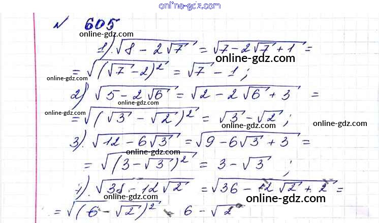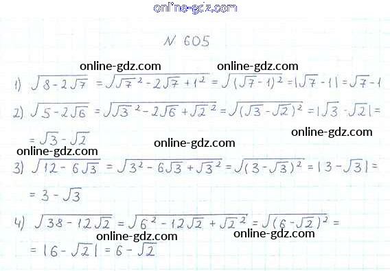 Готовые домашние задания по Алгебре за 8 класс Учебник Мерзляк, Полонский Алгоритм успеха 2016 - §18. Функция y=√x Глава 2. Квадратные корни. Действительные числа 605