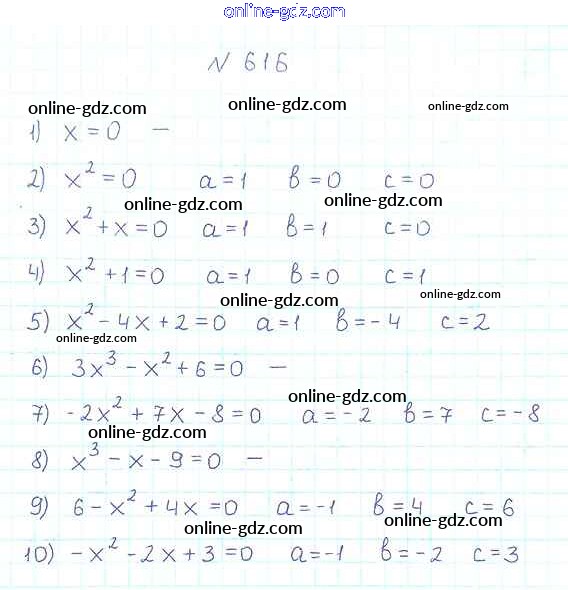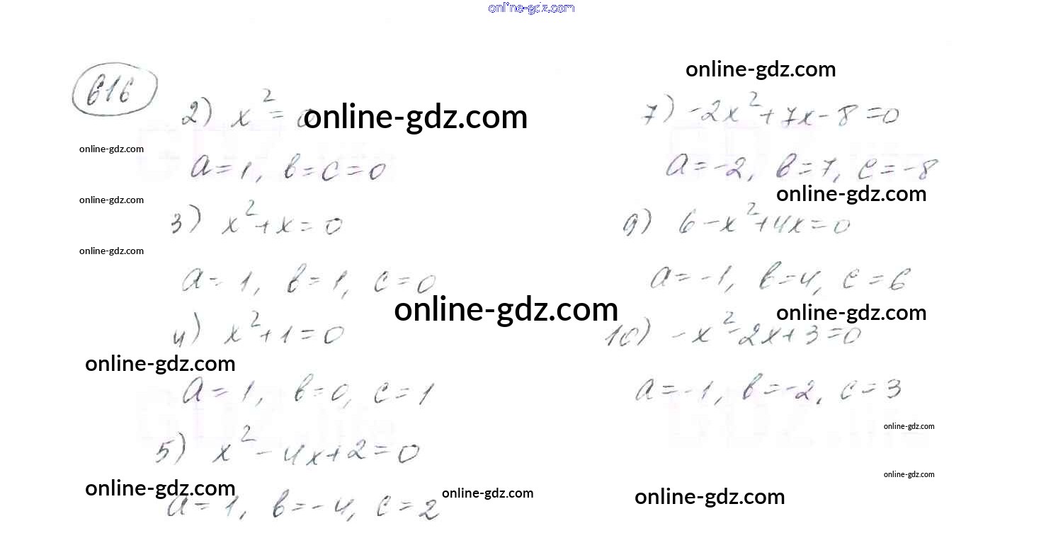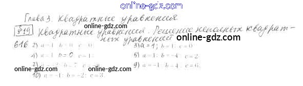 Готовые домашние задания по Алгебре за 8 класс Учебник Мерзляк, Полонский Алгоритм успеха 2016 - §19. Квадратные уравнения. Решение неполных квадратных уравнений Глава 3. Квадратные уравнения 616
