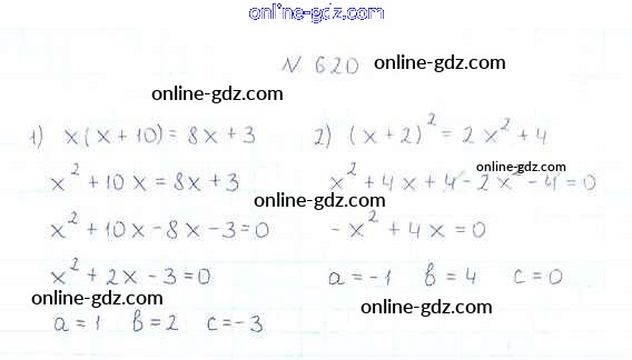 Готовые домашние задания по Алгебре за 8 класс Учебник Мерзляк, Полонский Алгоритм успеха 2016 - §19. Квадратные уравнения. Решение неполных квадратных уравнений Глава 3. Квадратные уравнения 620