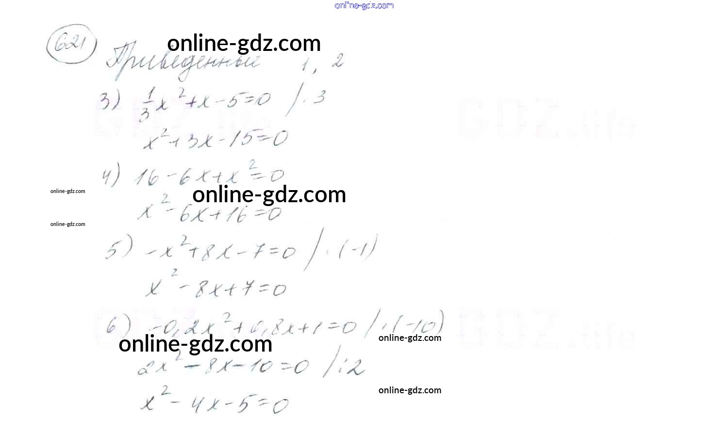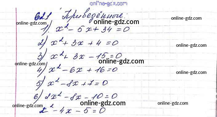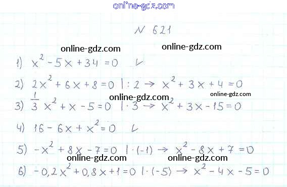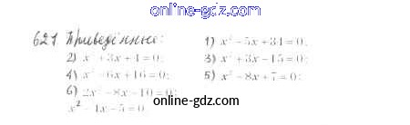 Готовые домашние задания по Алгебре за 8 класс Учебник Мерзляк, Полонский Алгоритм успеха 2016 - §19. Квадратные уравнения. Решение неполных квадратных уравнений Глава 3. Квадратные уравнения 621