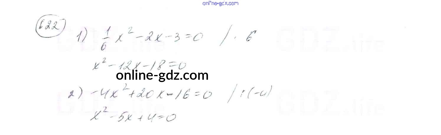 Готовые домашние задания по Алгебре за 8 класс Учебник Мерзляк, Полонский Алгоритм успеха 2016 - §19. Квадратные уравнения. Решение неполных квадратных уравнений Глава 3. Квадратные уравнения 622