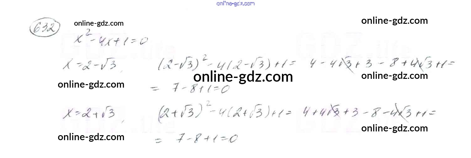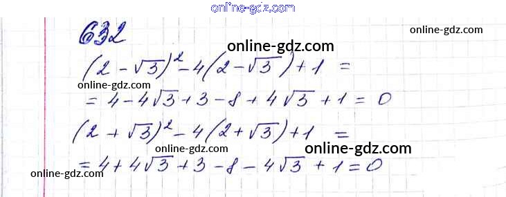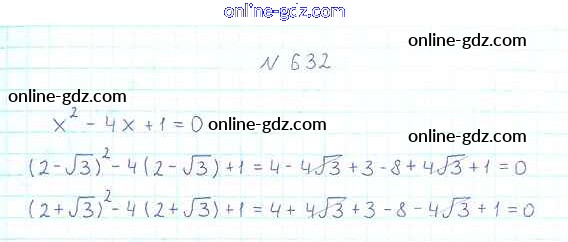 Готовые домашние задания по Алгебре за 8 класс Учебник Мерзляк, Полонский Алгоритм успеха 2016 - §19. Квадратные уравнения. Решение неполных квадратных уравнений Глава 3. Квадратные уравнения 632