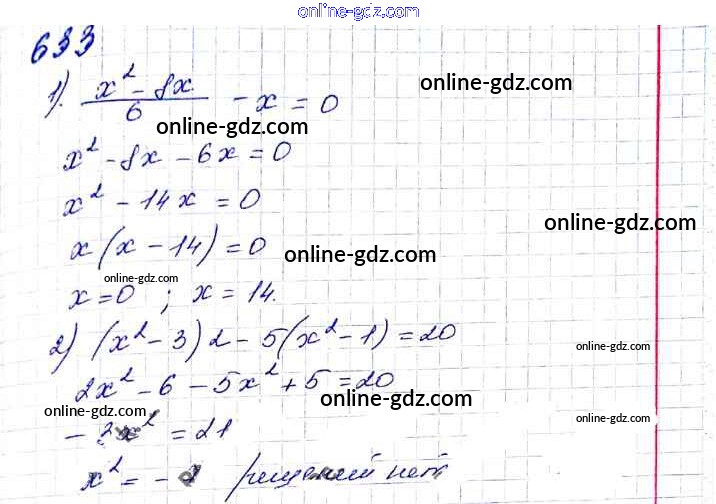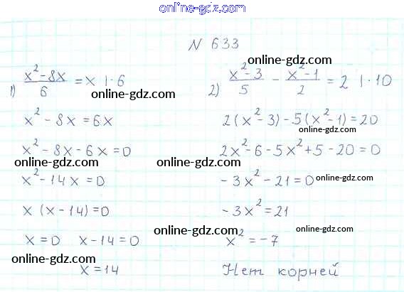 Готовые домашние задания по Алгебре за 8 класс Учебник Мерзляк, Полонский Алгоритм успеха 2016 - §19. Квадратные уравнения. Решение неполных квадратных уравнений Глава 3. Квадратные уравнения 633