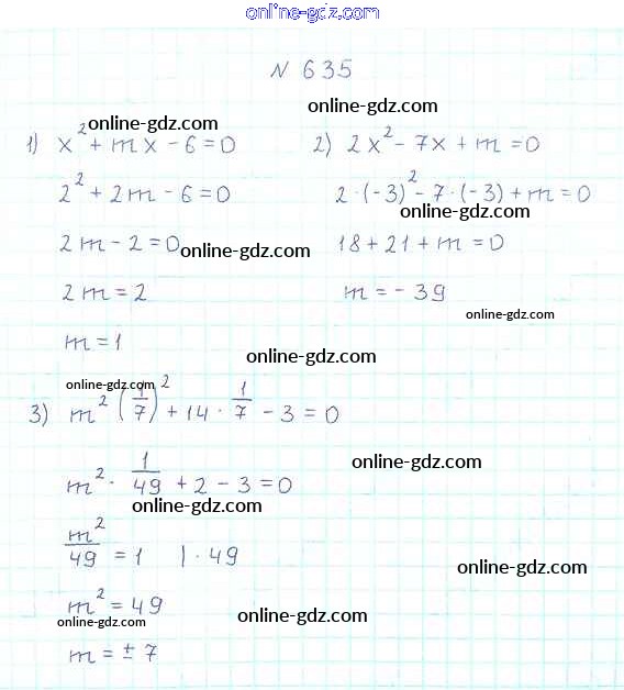 Готовые домашние задания по Алгебре за 8 класс Учебник Мерзляк, Полонский Алгоритм успеха 2016 - §19. Квадратные уравнения. Решение неполных квадратных уравнений Глава 3. Квадратные уравнения 635