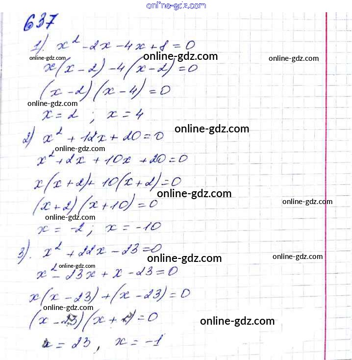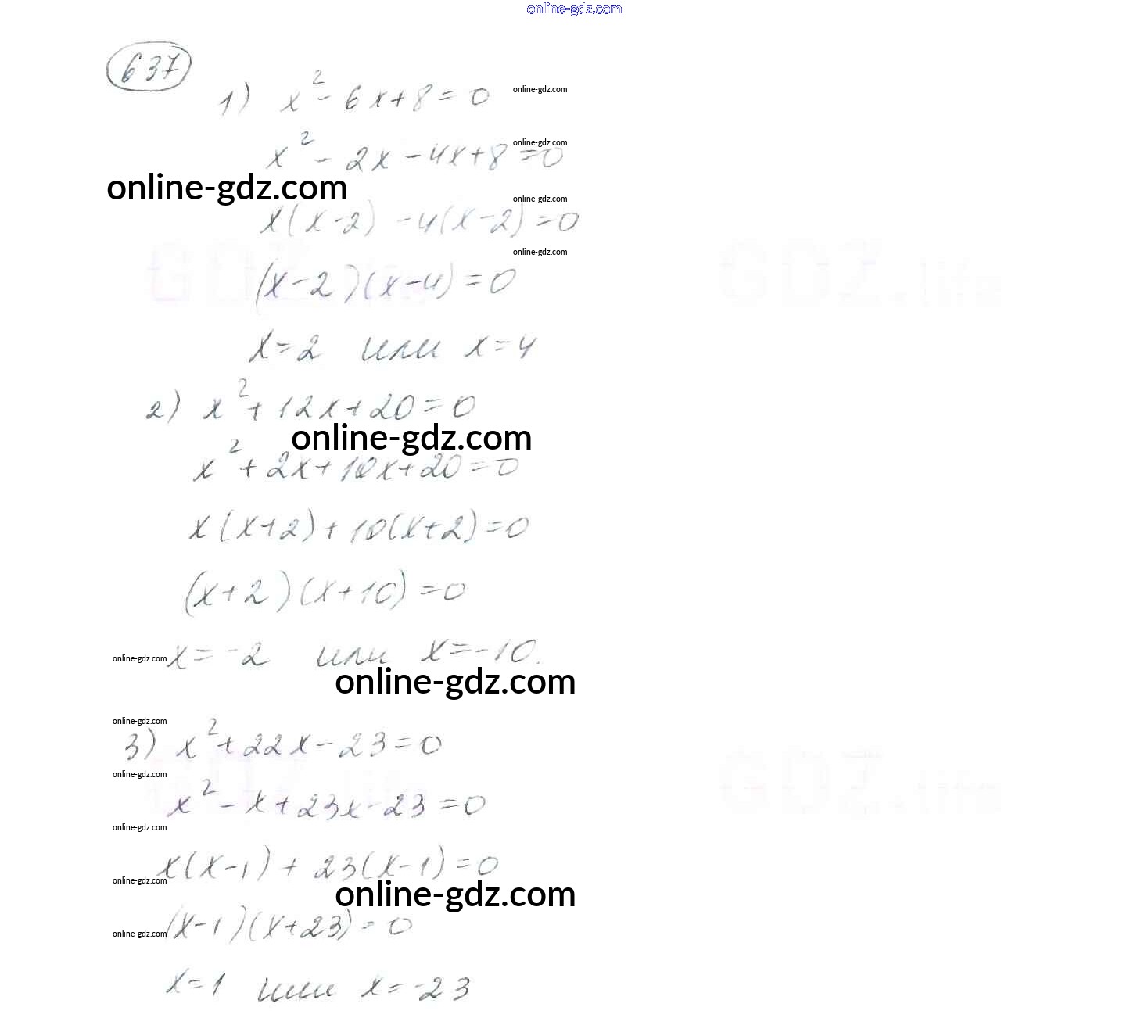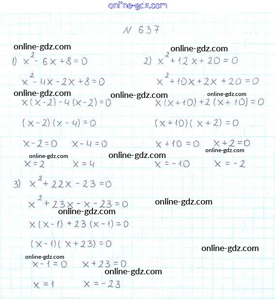 Готовые домашние задания по Алгебре за 8 класс Учебник Мерзляк, Полонский Алгоритм успеха 2016 - §19. Квадратные уравнения. Решение неполных квадратных уравнений Глава 3. Квадратные уравнения 637