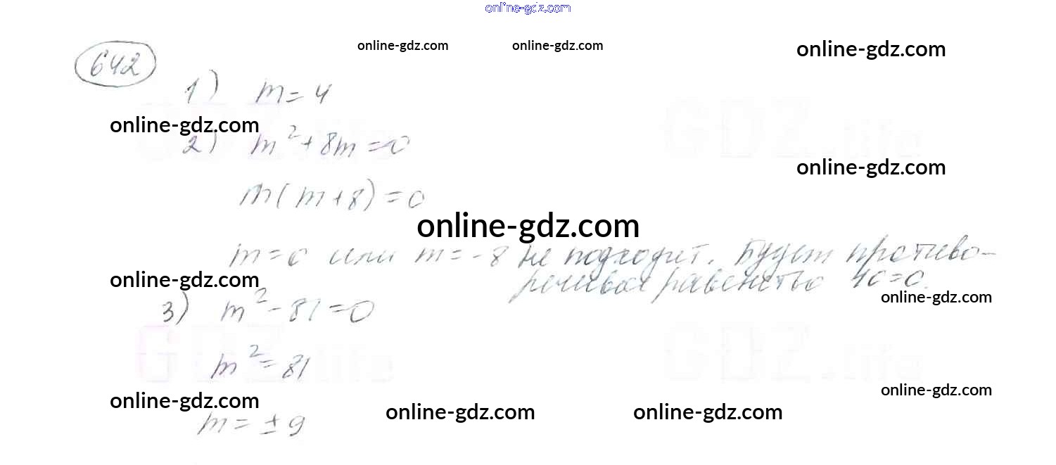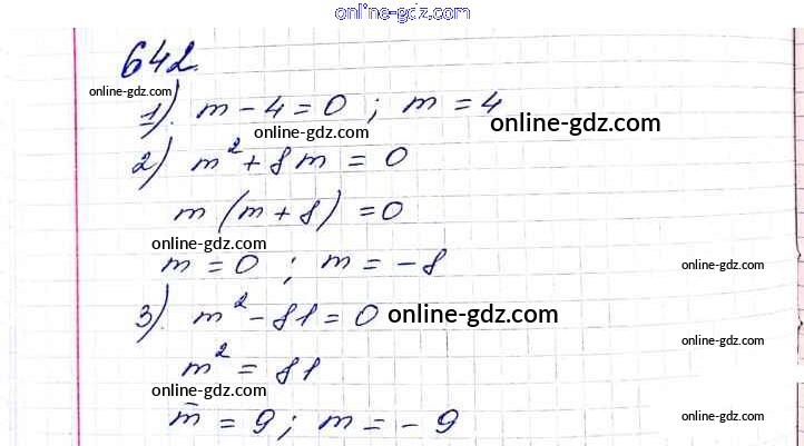 Готовые домашние задания по Алгебре за 8 класс Учебник Мерзляк, Полонский Алгоритм успеха 2016 - §19. Квадратные уравнения. Решение неполных квадратных уравнений Глава 3. Квадратные уравнения 642