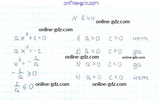 Готовые домашние задания по Алгебре за 8 класс Учебник Мерзляк, Полонский Алгоритм успеха 2016 - §19. Квадратные уравнения. Решение неполных квадратных уравнений Глава 3. Квадратные уравнения 644