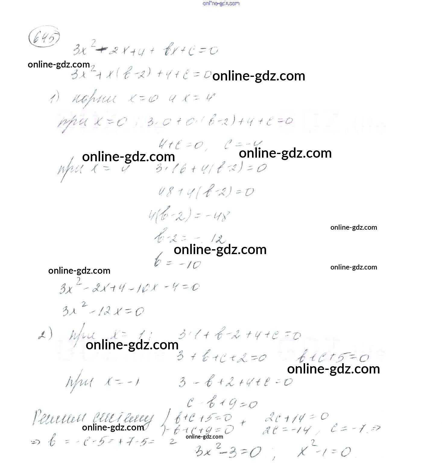 Готовые домашние задания по Алгебре за 8 класс Учебник Мерзляк, Полонский Алгоритм успеха 2016 - §19. Квадратные уравнения. Решение неполных квадратных уравнений Глава 3. Квадратные уравнения 645