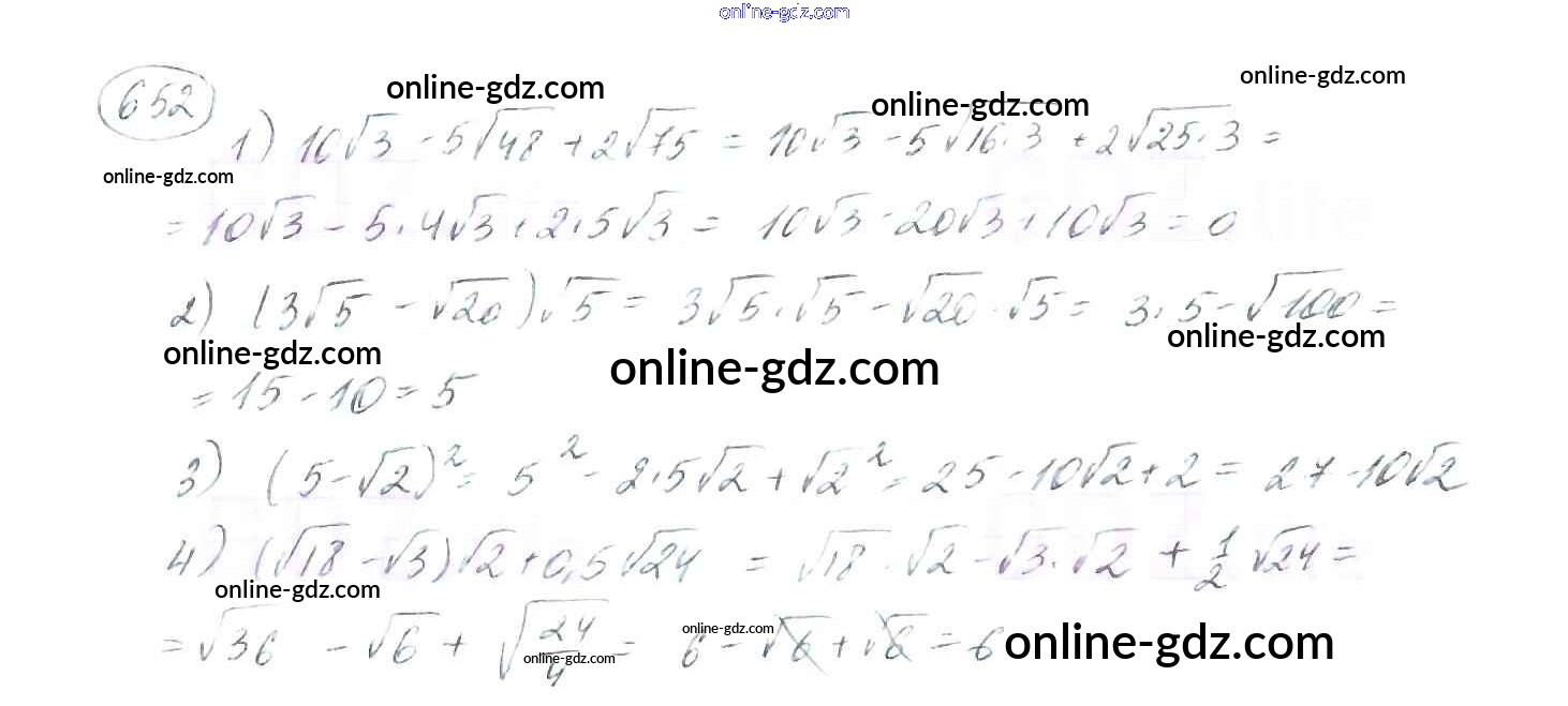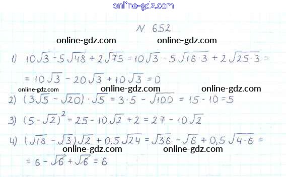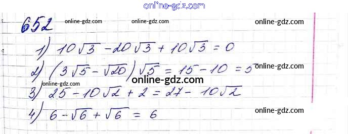Готовые домашние задания по Алгебре за 8 класс Учебник Мерзляк, Полонский Алгоритм успеха 2016 - §19. Квадратные уравнения. Решение неполных квадратных уравнений Глава 3. Квадратные уравнения 652