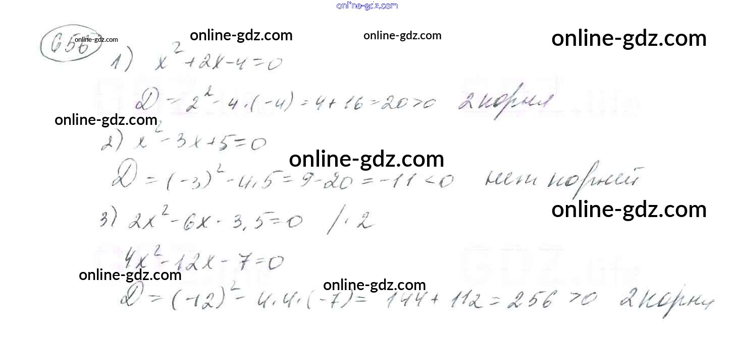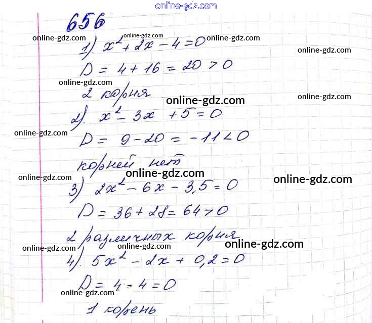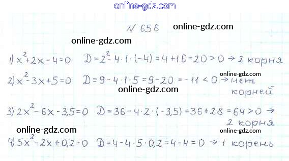Готовые домашние задания по Алгебре за 8 класс Учебник Мерзляк, Полонский Алгоритм успеха 2016 - §20. Формула корней квадратного уравнения Глава 3. Квадратные уравнения 656
