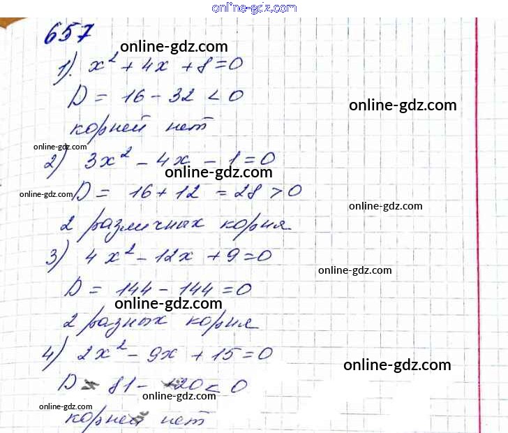 Готовые домашние задания по Алгебре за 8 класс Учебник Мерзляк, Полонский Алгоритм успеха 2016 - §20. Формула корней квадратного уравнения Глава 3. Квадратные уравнения 657