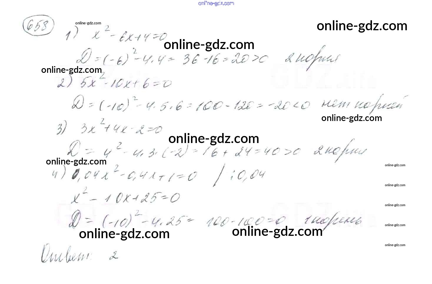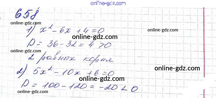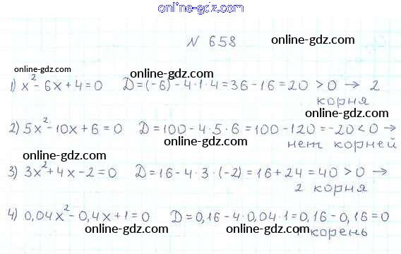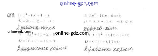 Готовые домашние задания по Алгебре за 8 класс Учебник Мерзляк, Полонский Алгоритм успеха 2016 - §20. Формула корней квадратного уравнения Глава 3. Квадратные уравнения 658