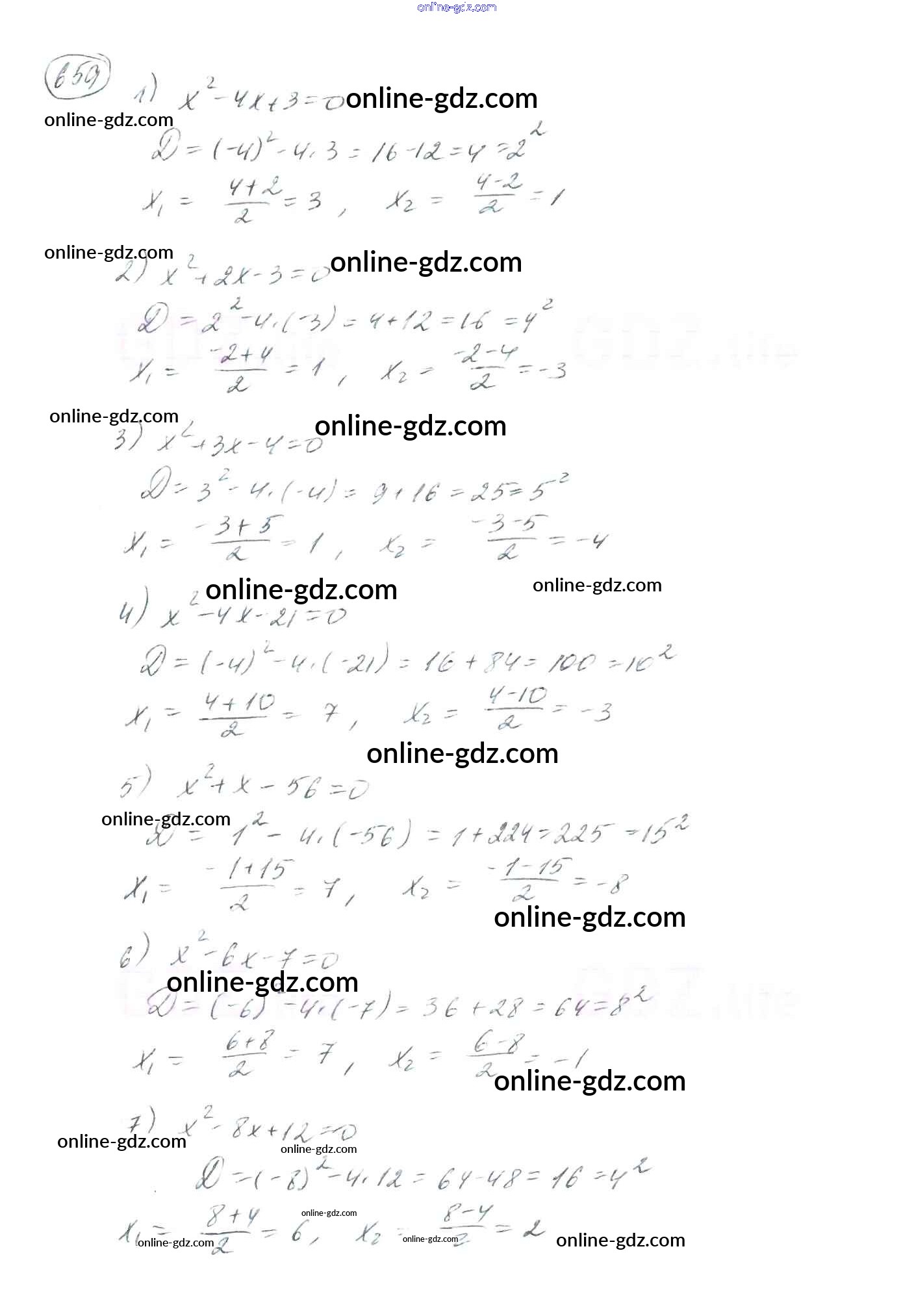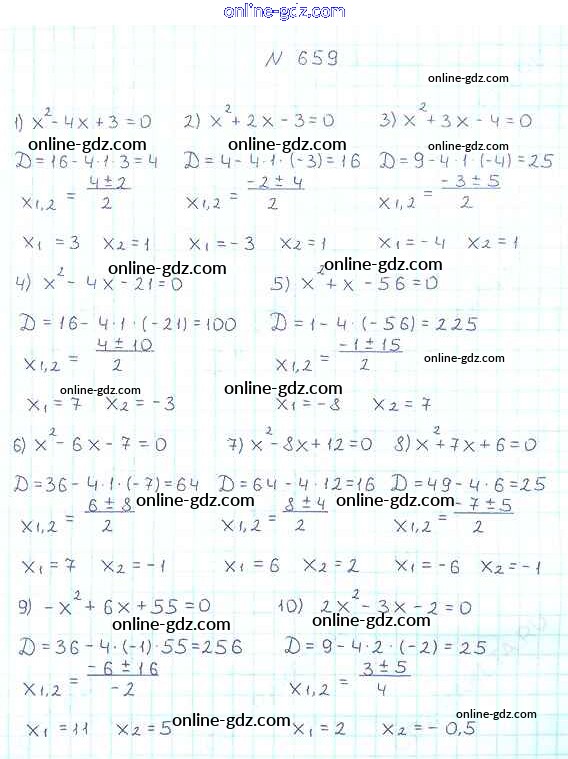 Готовые домашние задания по Алгебре за 8 класс Учебник Мерзляк, Полонский Алгоритм успеха 2016 - §20. Формула корней квадратного уравнения Глава 3. Квадратные уравнения 659