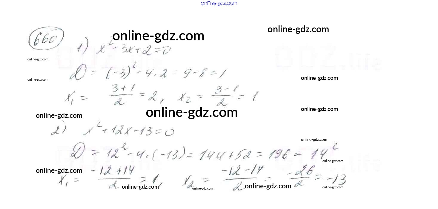 Готовые домашние задания по Алгебре за 8 класс Учебник Мерзляк, Полонский Алгоритм успеха 2016 - §20. Формула корней квадратного уравнения Глава 3. Квадратные уравнения 660