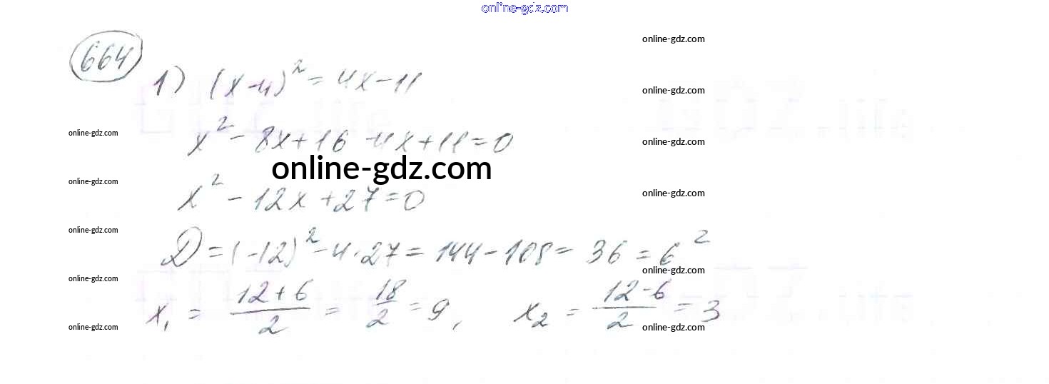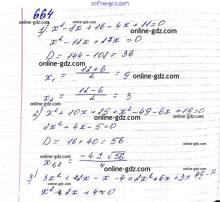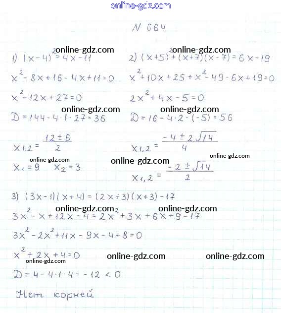 Готовые домашние задания по Алгебре за 8 класс Учебник Мерзляк, Полонский Алгоритм успеха 2016 - §20. Формула корней квадратного уравнения Глава 3. Квадратные уравнения 664
