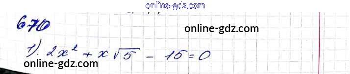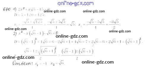Готовые домашние задания по Алгебре за 8 класс Учебник Мерзляк, Полонский Алгоритм успеха 2016 - §20. Формула корней квадратного уравнения Глава 3. Квадратные уравнения 670