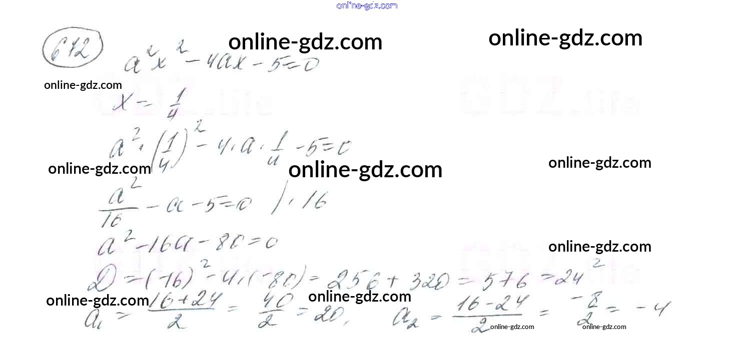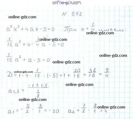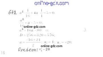 Готовые домашние задания по Алгебре за 8 класс Учебник Мерзляк, Полонский Алгоритм успеха 2016 - §20. Формула корней квадратного уравнения Глава 3. Квадратные уравнения 672