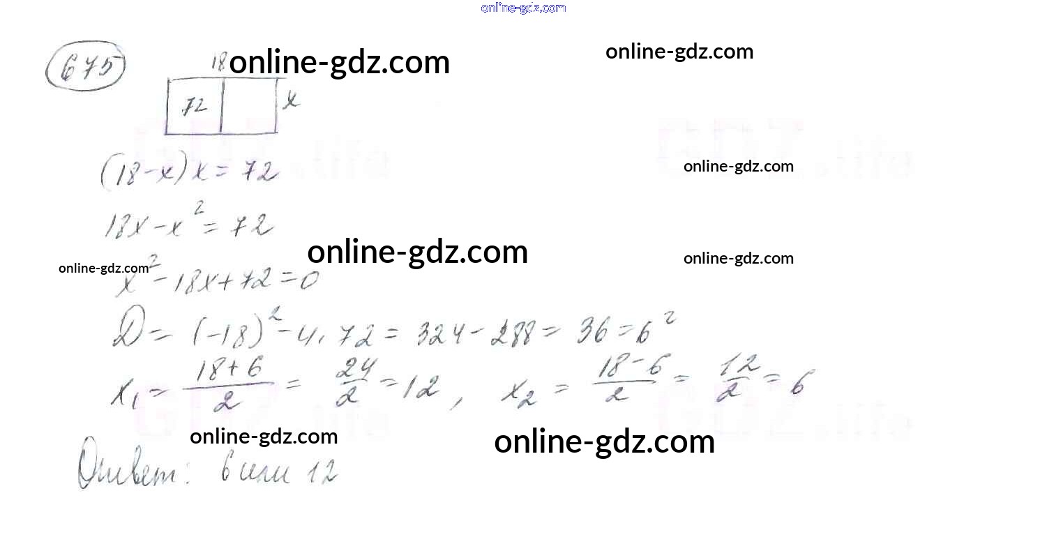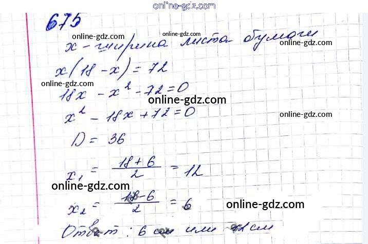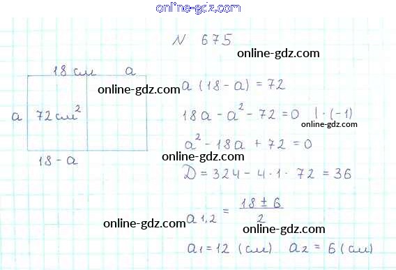 Готовые домашние задания по Алгебре за 8 класс Учебник Мерзляк, Полонский Алгоритм успеха 2016 - §20. Формула корней квадратного уравнения Глава 3. Квадратные уравнения 675