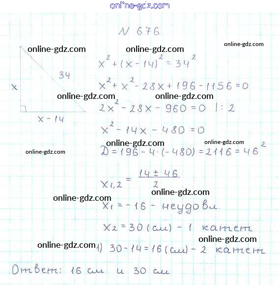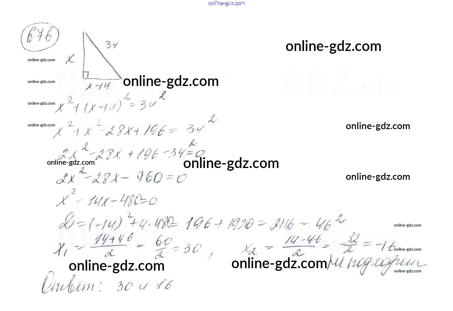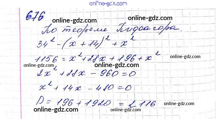 Готовые домашние задания по Алгебре за 8 класс Учебник Мерзляк, Полонский Алгоритм успеха 2016 - §20. Формула корней квадратного уравнения Глава 3. Квадратные уравнения 676