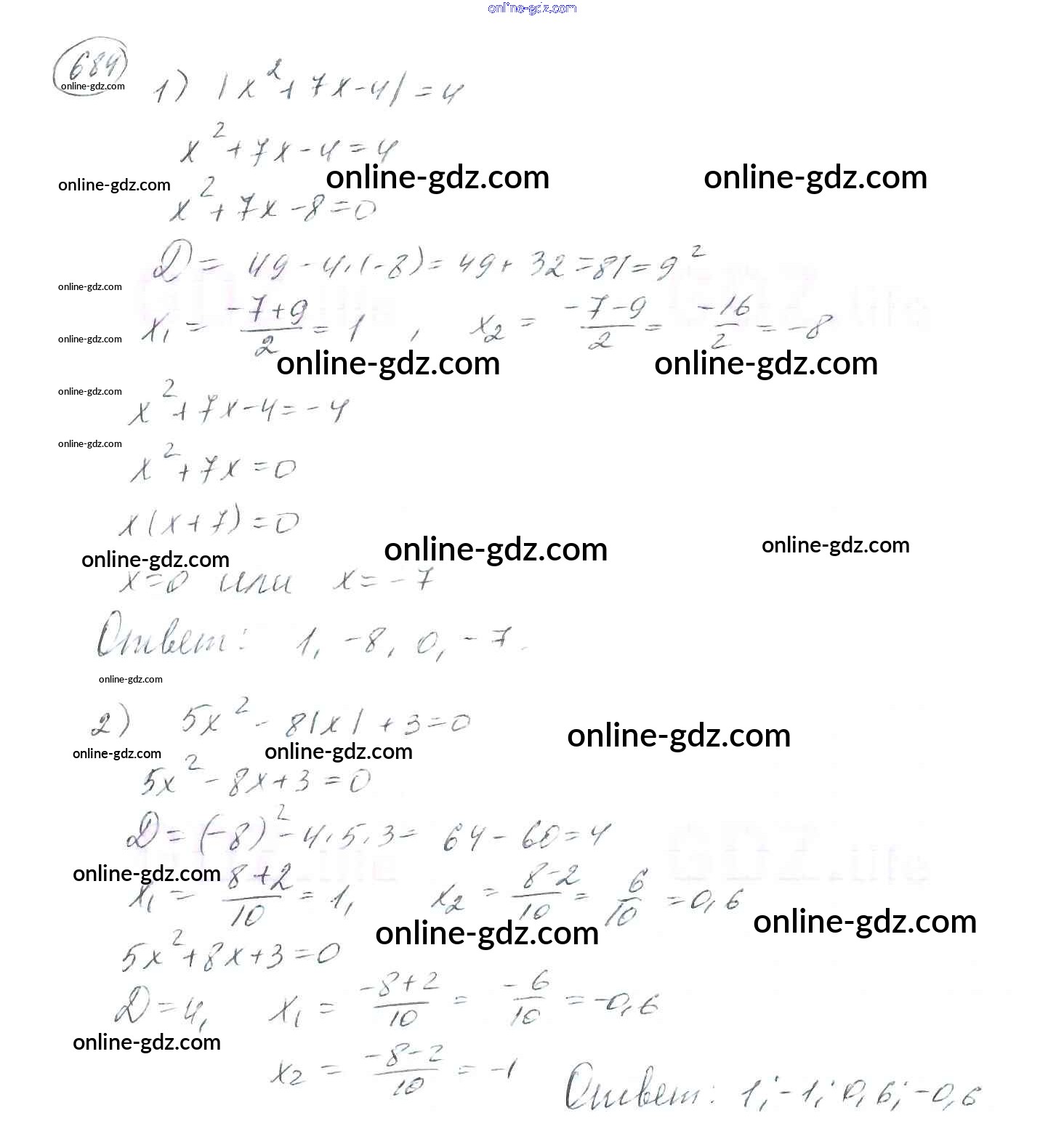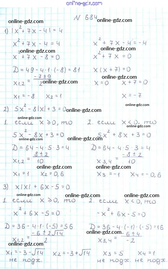 Готовые домашние задания по Алгебре за 8 класс Учебник Мерзляк, Полонский Алгоритм успеха 2016 - §20. Формула корней квадратного уравнения Глава 3. Квадратные уравнения 684
