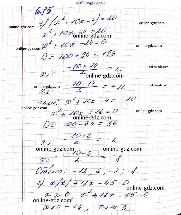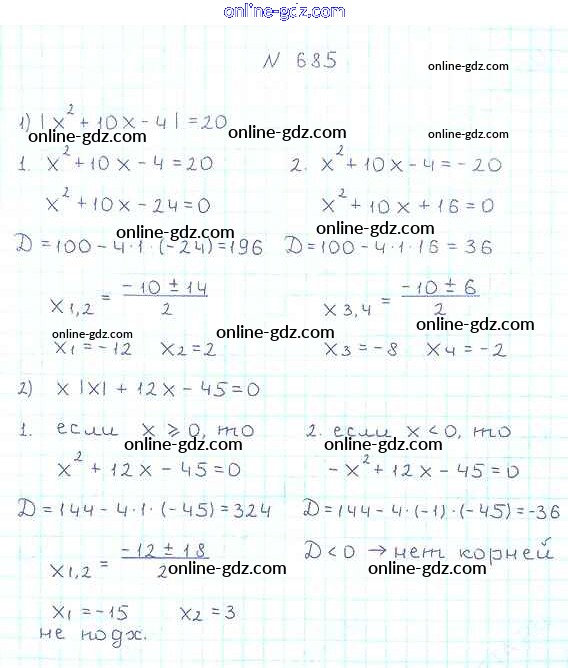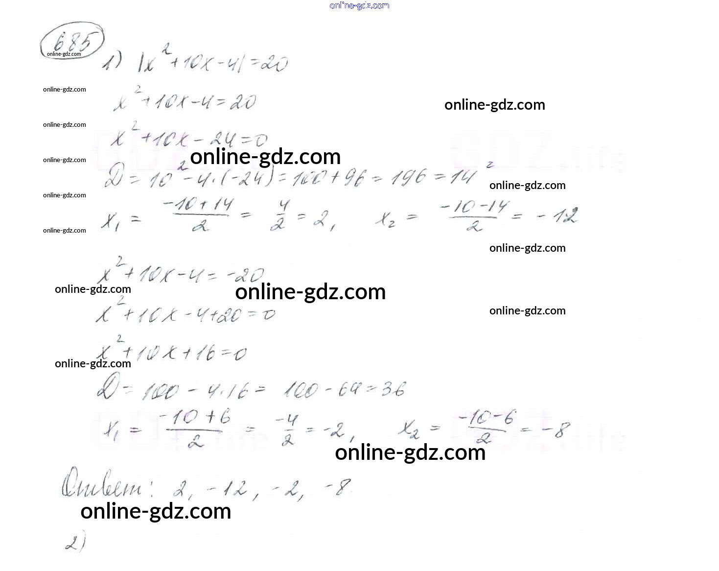 Готовые домашние задания по Алгебре за 8 класс Учебник Мерзляк, Полонский Алгоритм успеха 2016 - §20. Формула корней квадратного уравнения Глава 3. Квадратные уравнения 685