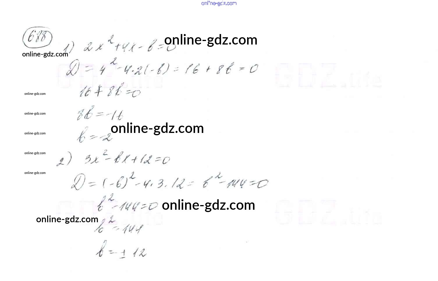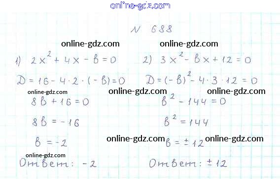 Готовые домашние задания по Алгебре за 8 класс Учебник Мерзляк, Полонский Алгоритм успеха 2016 - §20. Формула корней квадратного уравнения Глава 3. Квадратные уравнения 688