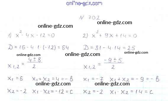 Готовые домашние задания по Алгебре за 8 класс Учебник Мерзляк, Полонский Алгоритм успеха 2016 - §20. Формула корней квадратного уравнения Глава 3. Квадратные уравнения 702
