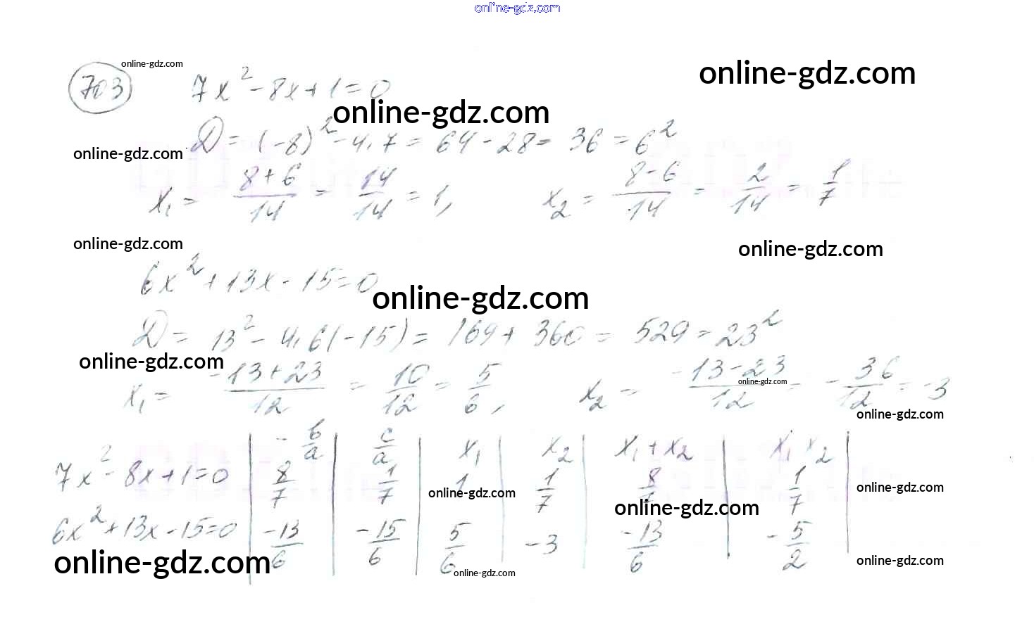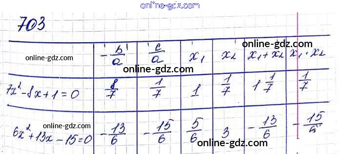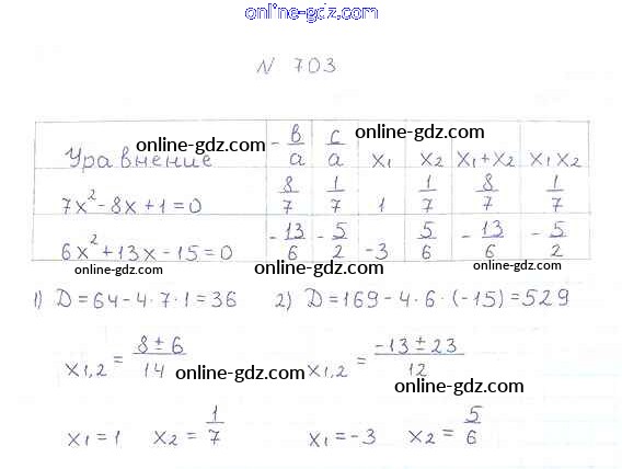 Готовые домашние задания по Алгебре за 8 класс Учебник Мерзляк, Полонский Алгоритм успеха 2016 - §20. Формула корней квадратного уравнения Глава 3. Квадратные уравнения 703