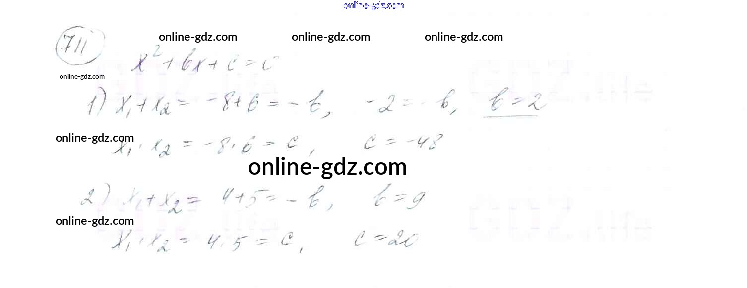 Готовые домашние задания по Алгебре за 8 класс Учебник Мерзляк, Полонский Алгоритм успеха 2016 - §21. Теорема Виета Глава 3. Квадратные уравнения 711