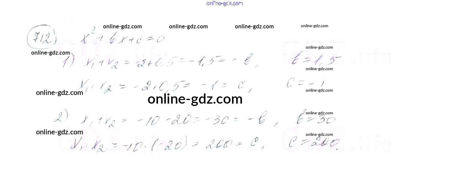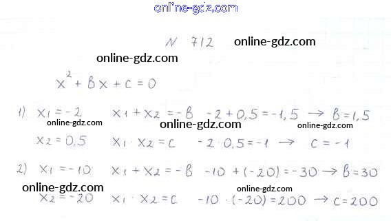 Готовые домашние задания по Алгебре за 8 класс Учебник Мерзляк, Полонский Алгоритм успеха 2016 - §21. Теорема Виета Глава 3. Квадратные уравнения 712