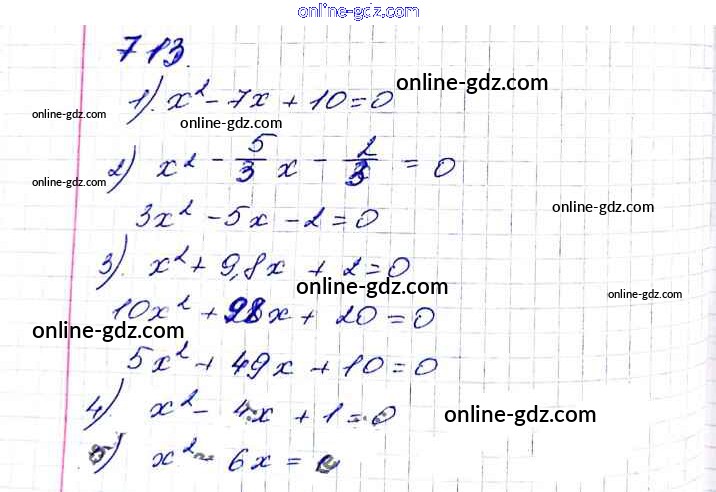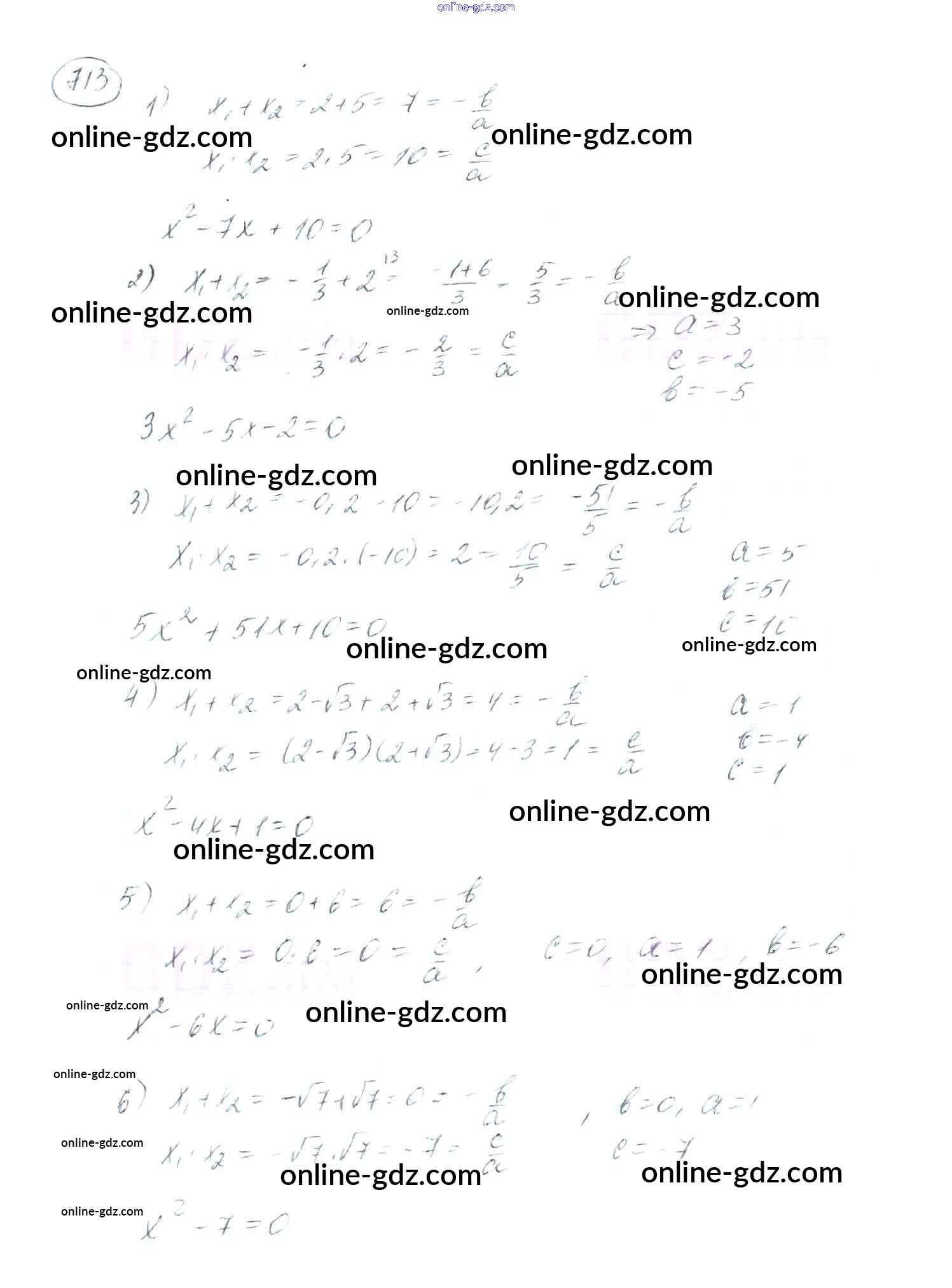 Готовые домашние задания по Алгебре за 8 класс Учебник Мерзляк, Полонский Алгоритм успеха 2016 - §21. Теорема Виета Глава 3. Квадратные уравнения 713